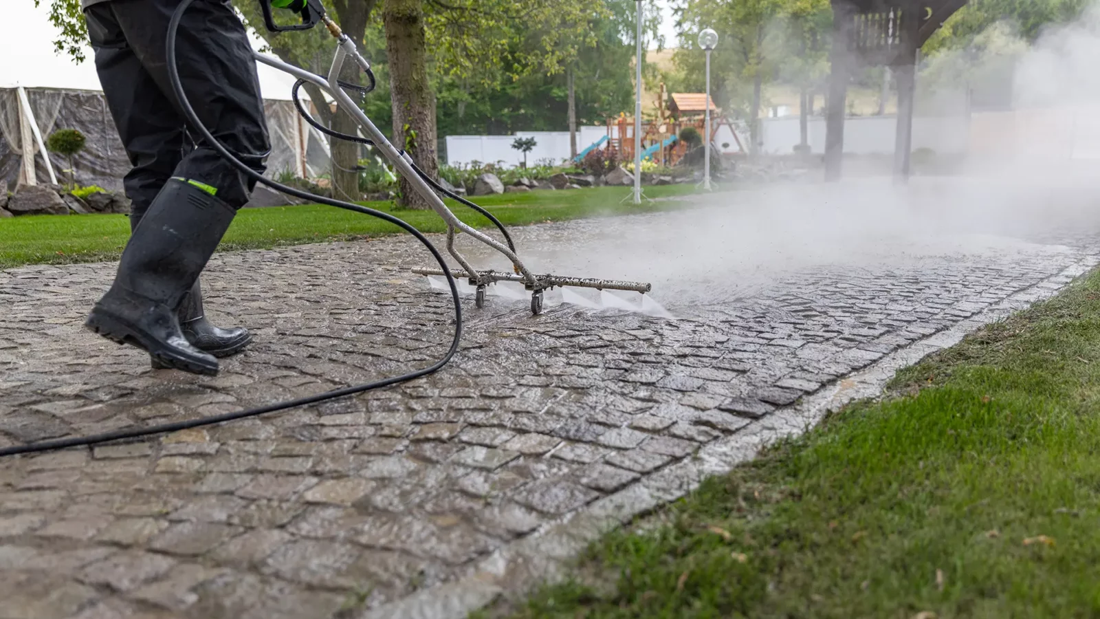 Professionelle Maschinen wie Kehrgeräte, Hochdrucktechnik oder Moosentferner stehen vielen nicht zur Verfügung – ein echter Zeit- und Kraftaufwand.